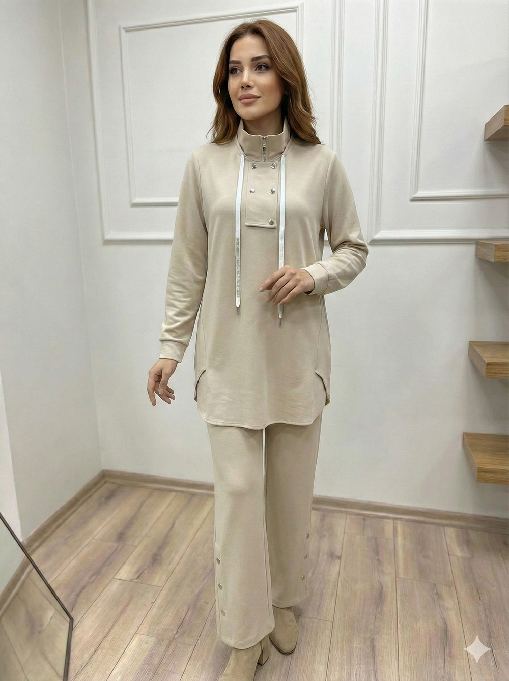 Yumuşak dokularla sade ama etkili bir duruş.Dikkat çekmeden fark yaratmak isteyenler için ideal. Güncel ama zamansız bir görünüm sunar. -