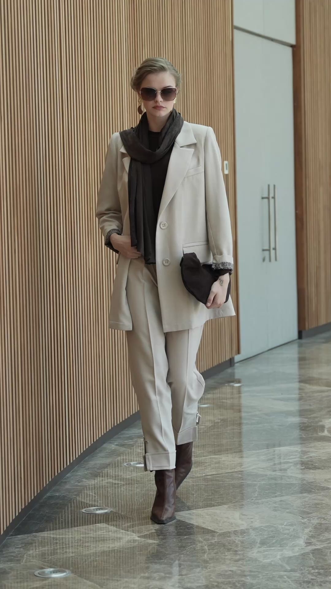 Yumuşak dokularla sade ama etkili bir duruş.Dikkat çekmeden fark yaratmak isteyenler için ideal. Güncel ama zamansız bir görünüm sunar.